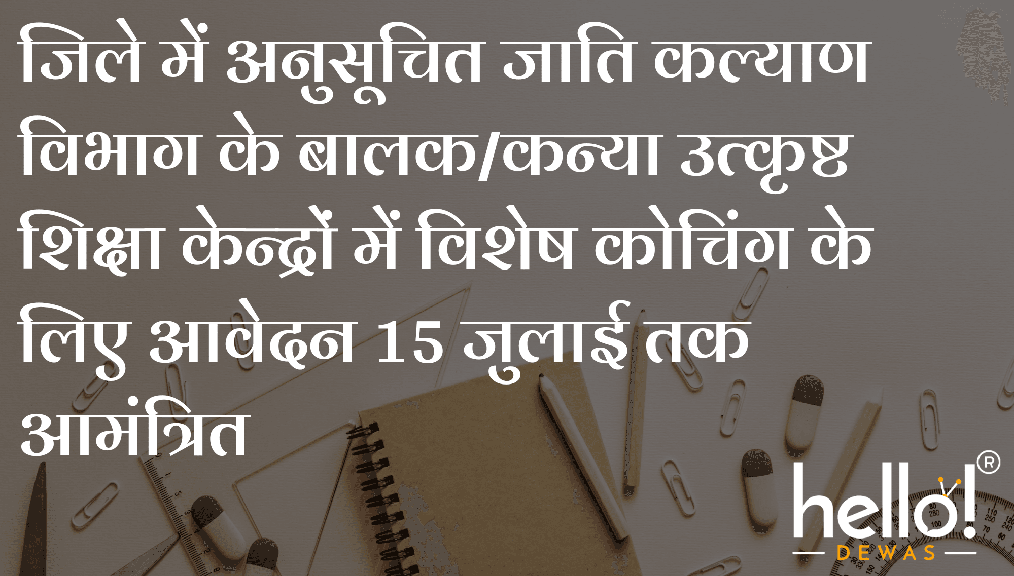 देवास जिले में अनुसूचित जाति कल्याण विभाग अन्तर्गत जिला एवं विकासखण्ड स्तर पर संचालित विभागीय बालक/कन्या उत्कृष्ट शिक्षा केन्द्रों में प्रवेशित छात्र/छात्राओं को विभिन्न विषयों में विशेष कोचिंग कराये जाने के लिए केवल देवास जिले के शिक्षकों से आवेदन आमंत्रित किये गये है। आवेदन पत्र जिला संयोजक कार्यालय जनजातीय कार्य विभाग बालगढ़ रोड भोलेनाथ मंदिर के सामने देवास में 15 जुलाई को सायं 5:30 तक प्राप्त किये जायेंगे। संचालनालय के निर्देशानुसार केवल शासकीय संस्थाओं के शिक्षक ही कोचिंग कार्य हेतु पात्र रहेंगे। इच्छुक शिक्षक अपने संकुल प्राचार्यो की अनुशंसा सहित जिला कार्यालय में आवेदन प्रस्तुत करेंगे ।