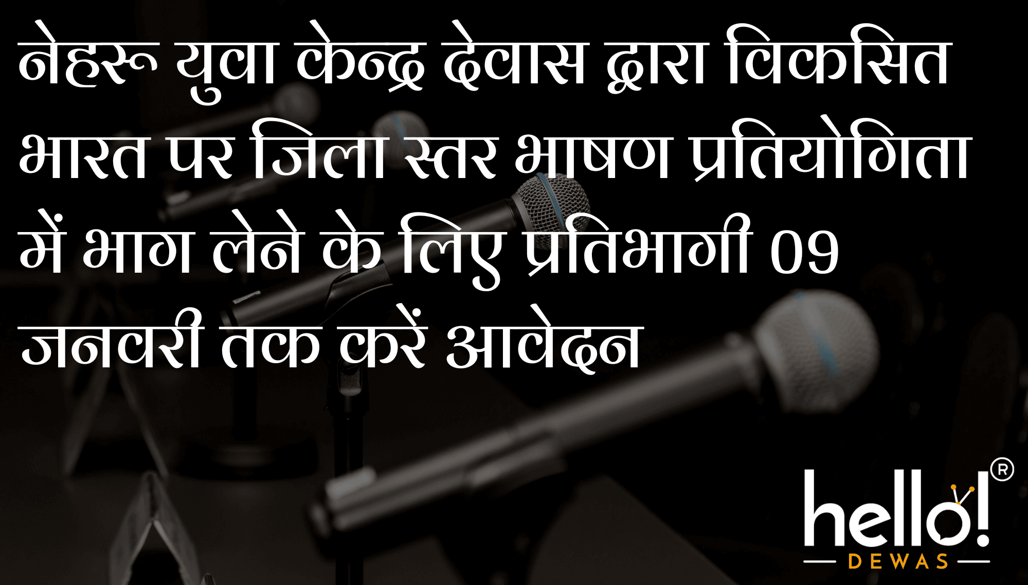 नेहरू युवा केन्द्र देवास द्वारा विकसित भारत पर जिला स्तर भाषण प्रतियोगिता माय भारत-विकसित भारत@2047 का आयोजन किया जा रहा है। प्रतियोगिता में 15 से 29 वर्ष की आयु वर्ग के युवा भाग ले सकते हैं। इच्छुक युवा 09 जनवरी तक नेहरू युवा केन्द्र में आवेदन कर सकते है। प्रतिभागी देवास जिले का निवासी होना आवश्यक है। प्रतियोगिता 10 जनवरी 2024 को आयोजित की जायेगी। अधिक जानकारी के लिए कार्यालय नेहरू युवा केन्द्र, विजयनगर में प्रातः 11 बजे से सायं 05 बजे तक संपर्क कर सकते हैं। प्रतियोगिता का उद्देश्य सभी वर्गो के युवाओं को एक मंच प्रदान करना और युवा वक्ताओं को कौशल दिखाने और उनके साथ प्रतिस्पर्धा करने के लिए एक मंच प्रदान करना। जिले स्तर पर एक प्रतिभागी का चयन किया जाएगा एवं राज्य स्तर पर प्रथम पुरस्कार 01 लाख रूपये, द्वितीय 50 हजार रूपये एवं तृतीय 25 हजार रूपये को दिया जाएगा।