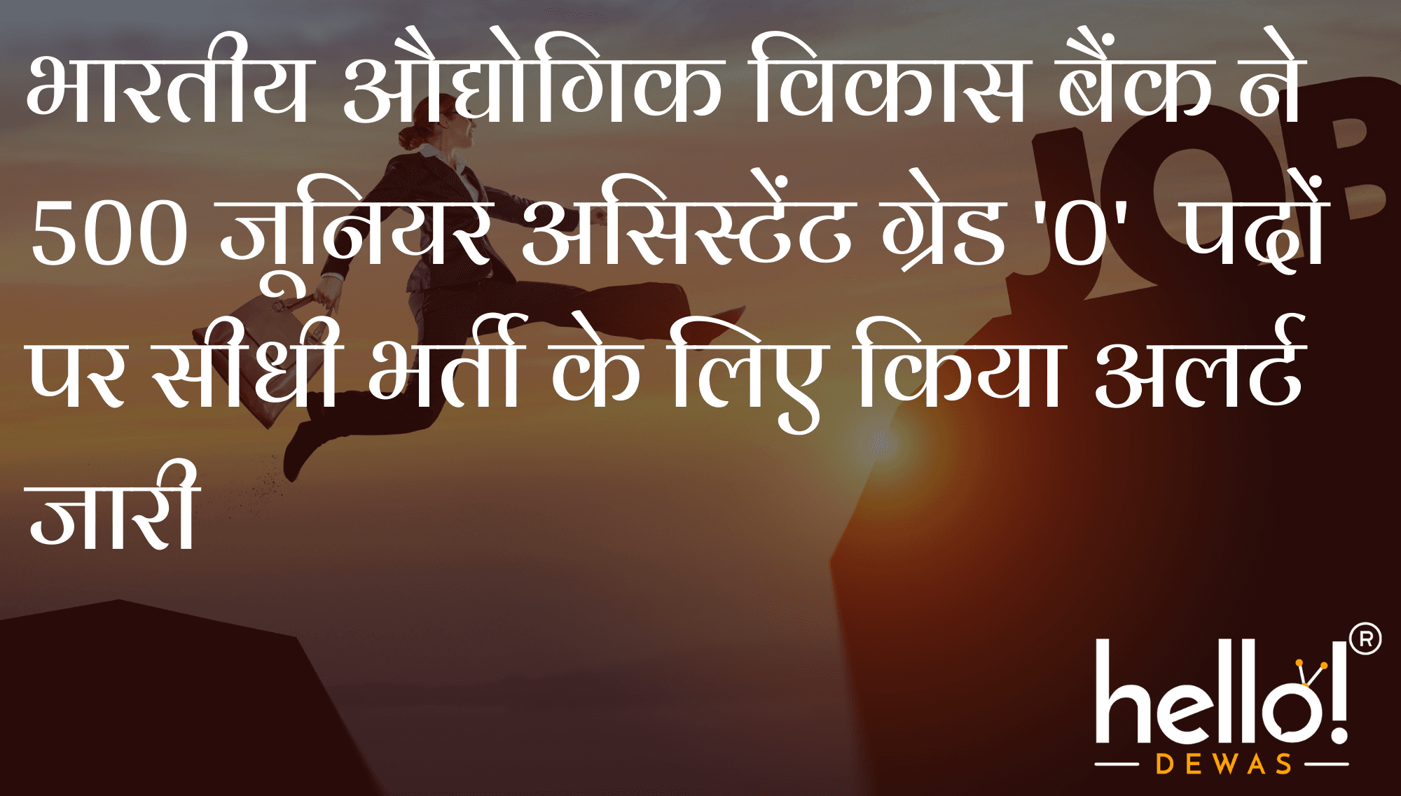 भारतीय औद्योगिक विकास बैंक ने 500 जूनियर असिस्टेंट ग्रेड ‘O’ पदों पर सीधी भर्ती के लिए किया अलर्ट जारी