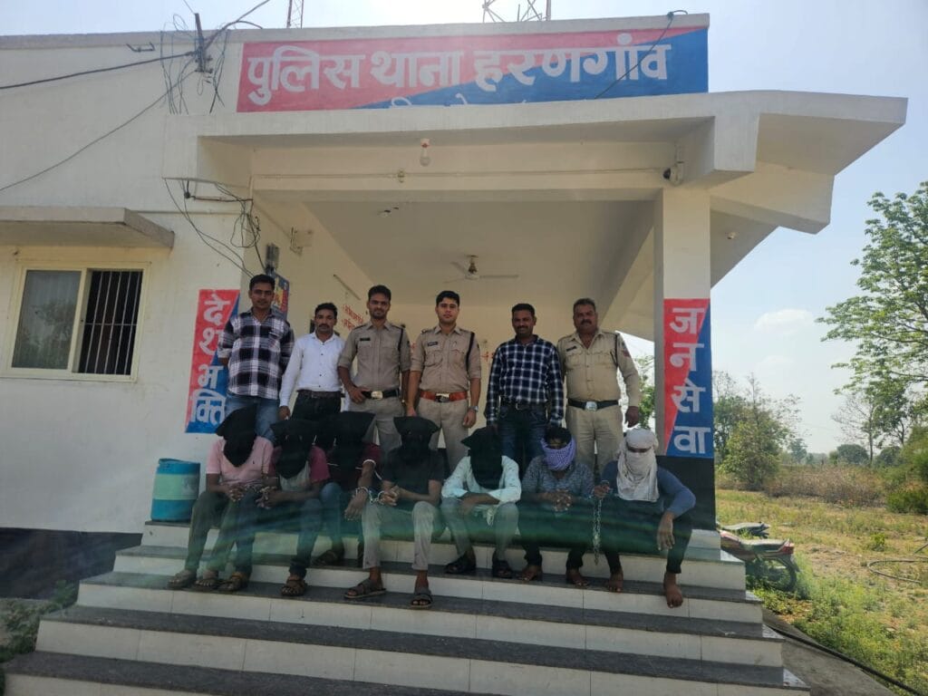 संक्षिप्त विवरणः फरियादी राजदत्त शर्मा पिता गंगाप्रसाद शर्मा उम्र 65 साल निवासी 50 ऋषिनगर हवाबंगला इंदौर थाना हवाबंगला जिला इंदौर ने रिपोर्ट किया मैं करीब 32 साल से कुणाल राठौर पिता रमेश राठौर निवासी 100 कान्यकुब्ज नगर इंदौर की कंपनी दुर्गा फुड प्रोडक्ट इंदौर में सेल्समेन का काम करता हूँ। कंपनी में नमकीन बनता है। दिनांक 24.05.2024 को मै ड्राईवर जितेन्द्र चौधरी व हेल्पर संदीप नागवेल के साथ कन्नौद, खातेगाँव, नसरूल्लागंज (भेरूंदा), रेहटी व हरणगांव में नमकीन की डिलेवरी कर रूपयो का कलेक्शन कर लौट रहा था कि ग्राम औंकारा व सातल के बीच एक सफेद रंग की कार ने मेरी आईसर गाडी को एक्सीडेंट का बोलकर रूकवाया, कार में से 04 नकाबपोश बदमाश उतरे जिन्होने एक्सीडेंट का बोलकर मेरे साथ ड्राईवर जितेन्द्र के साथ मारपीट कर करीब 07 से 08 लाख रूपये नगदी लूट कर ले गये। फरियादी की रिपोर्ट पर से थाना हरणगाँव पर अप.क्र. 84/2024 धारा 392 भादवि का पंजीबद्ध कर विवेचना मे लिया गया। दौराने विवेचना प्रकरण में धारा 395 भादवि का ईजाफा किया गया।