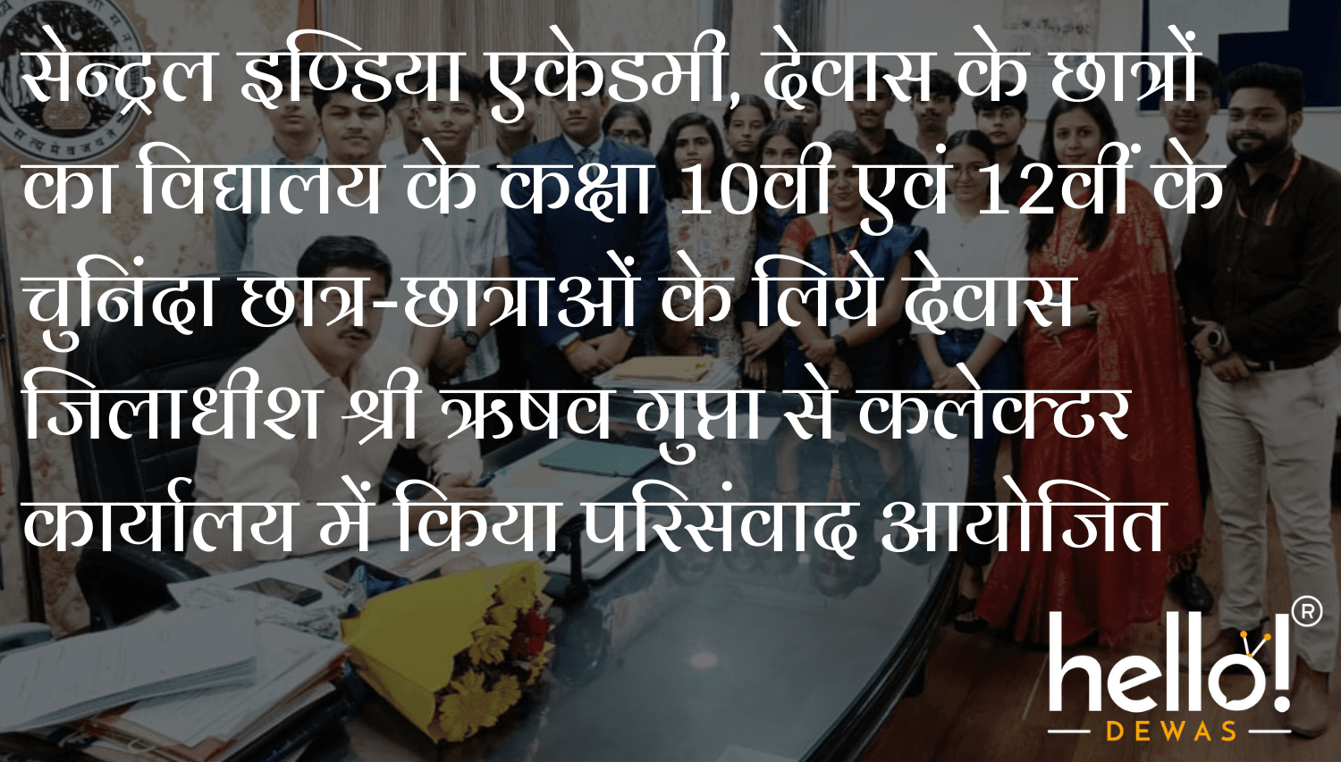 सेन्ट्रल इण्डिया एकेडमी, देवास के छात्रों का विद्यालय के कक्षा 10वी एवं 12वीं के चुनिंदा छात्र-छात्राओं के लिये देवास जिलाधीश श्री ऋषव गुप्ता से कलेक्टर कार्यालय में किया परिसंवाद आयोजित