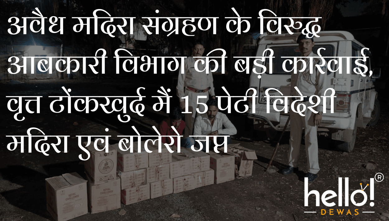 अवैध मदिरा संग्रहण के विरुद्ध आबकारी विभाग की बड़ी कार्रवाई, वृत्त टोंकखुर्द मैं 15 पेटी विदेशी मदिरा एवं बोलेरो जप्त