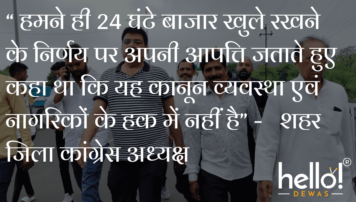 “ हमने ही 24 घंटे बाजार खुले रखने के निर्णय पर अपनी आपत्ति जताते हुए कहा था कि यह कानून व्यवस्था एवं नागरिकों के हक में नहीं है” – शहर जिला कांग्रेस अध्यक्ष