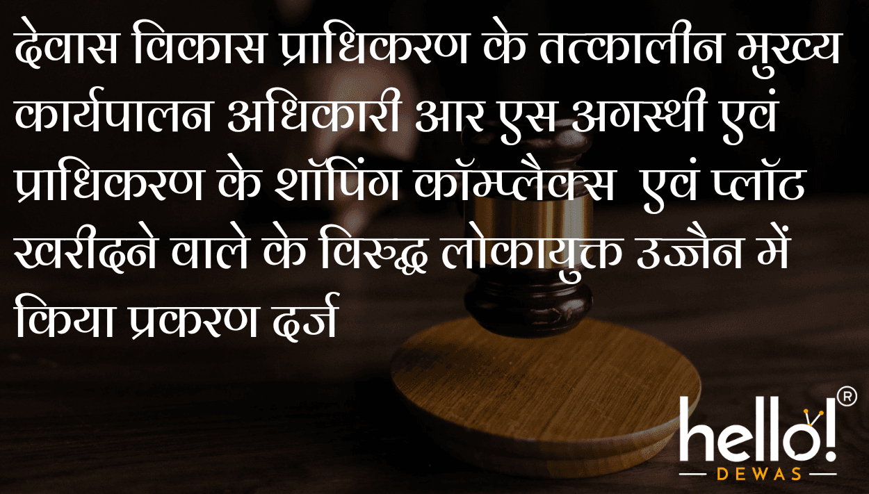 देवास विकास प्राधिकरण के तत्कालीन मुख्य कार्यपालन अधिकारी आर एस अगस्थी एवं प्राधिकरण के शॉपिंग कॉम्प्लैक्स एवं प्लॉट खरीदने वाले के विरुद्ध लोकायुक्त उज्जैन में किया प्रकरण दर्ज