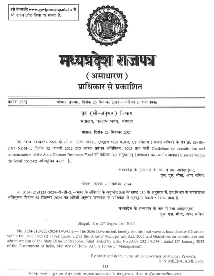 मध्य प्रदेश में अब लू/लपट को भी प्राकृतिक आपदा माना जाएगा