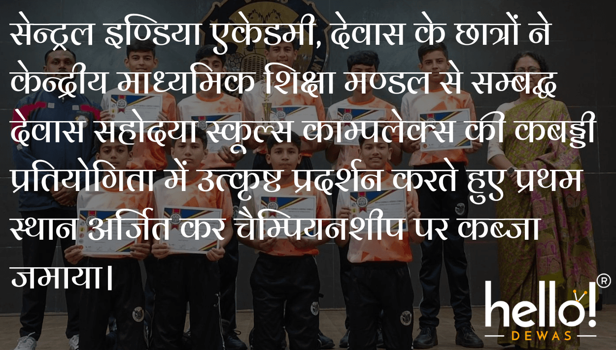 सेन्ट्रल इण्डिया एकेडमी, देवास के छात्रों ने केन्द्रीय माध्यमिक शिक्षा मण्डल से सम्बद्ध देवास सहोदया स्कूल्स काम्पलेक्स की कबड्डी प्रतियोगिता में उत्कृष्ट प्रदर्शन करते हुए प्रथम स्थान अर्जित कर चैम्पियनशीप पर कब्जा जमाया।