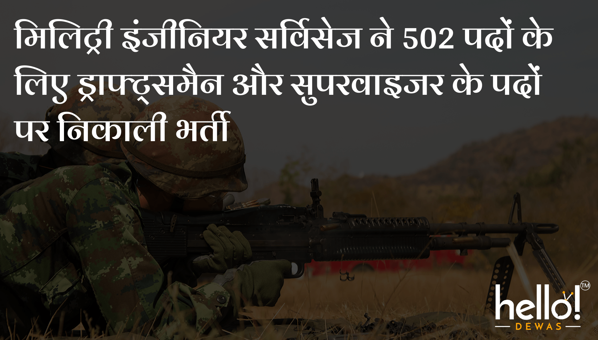 मिलिट्री इंजीनियर सर्विसेज (MES) ने ड्राफ्ट्समैन और सुपरवाइजर (बी/एस) के पदों पर भर्ती के लिए आवेदन मांगे हैं। इन पदों के लिए ऑनलाइन एप्लीकेशन प्रोसेस शुरू हो चुकी है। इन पदों के लिए आवेदन करने की आखिरी तारीख 12 अप्रैल तय है। इच्छुक और योग्य कैंडिडेट्स ऑफिशियल वेबसाइट mes.gov.in के जरिए ऑनलाइन आवेदन कर सकते हैं। इस भर्ती के तहत कुल 502 रिक्त पदों पर नियुक्ति की जाएगी।