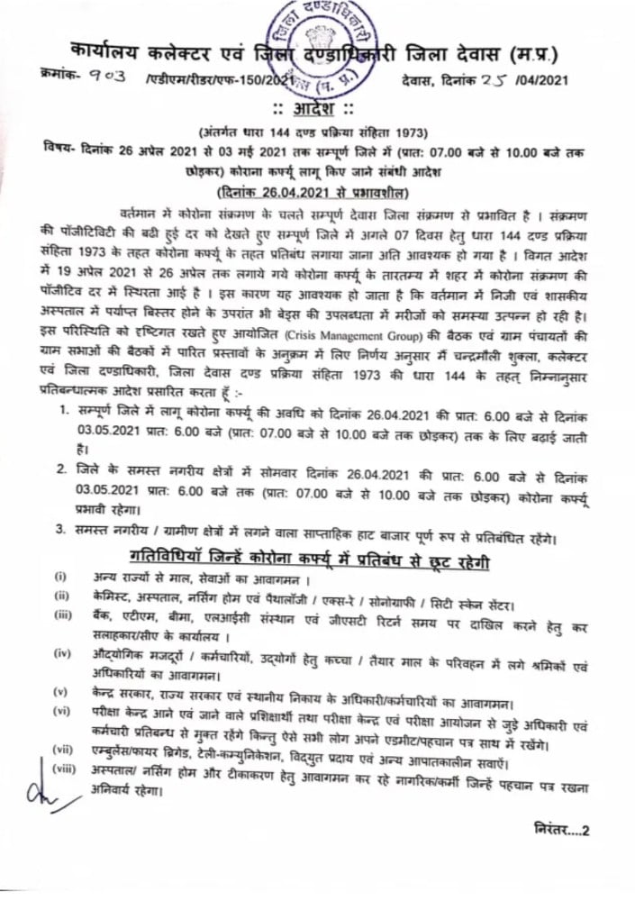 April 25, 2021 - In City News‚ Goverment By hellodewas@gmail.com 0 यहां ( website ) पर ऐड देनें के लिए 8962748593 पर कोनटेक्ट करें और बढ़ाए अपने बिज़नेस की पहुंच । Previous देवास कोरोना हेल्थ बुलेटिन Next देवास में 18 स्थानों पर माइक्रो कंटेंटमेंट एरिया बनाए गए