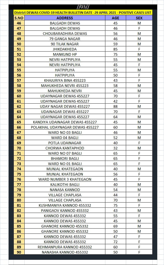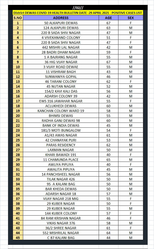 देवास कोरोना हेल्थ बुलेटिन – 29 अप्रैल 2021 (यूनिट.आई.डी.एस.पी.)