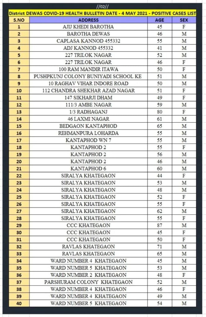 देवास कोरोना हेल्थ बुलेटिन – 4 मई 2021 (यूनिट.आई.डी.एस.पी.)