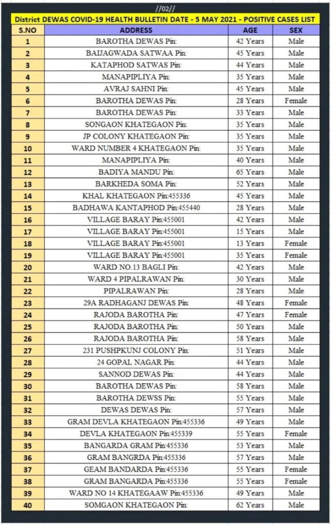 देवास कोरोना हेल्थ बुलेटिन – 5 मई 2021 (यूनिट.आई.डी.एस.पी.)