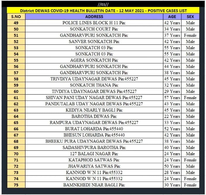 देवास कोरोना हेल्थ बुलेटिन – 12 मई 2021 (यूनिट.आई.डी.एस.पी.)