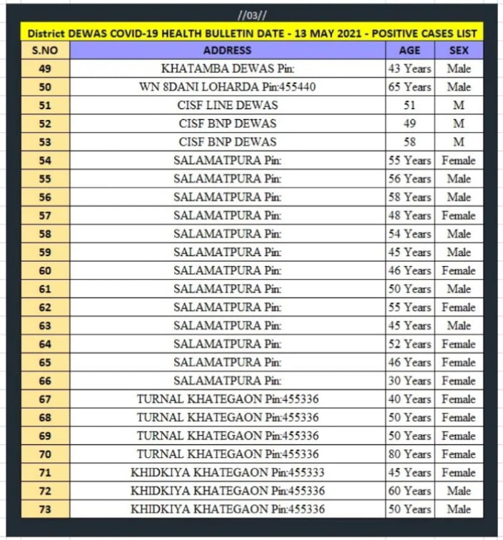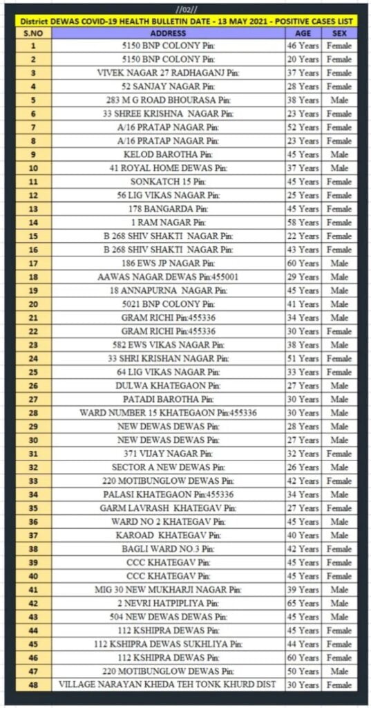 देवास कोरोना हेल्थ बुलेटिन – 13 मई 2021 (यूनिट.आई.डी.एस.पी.)