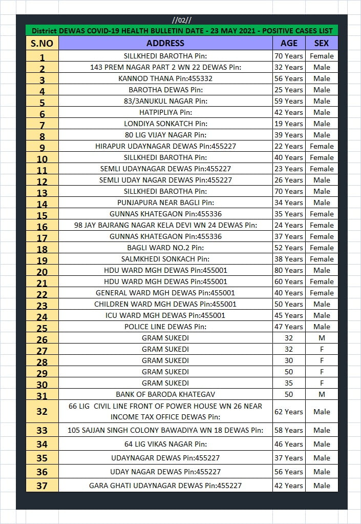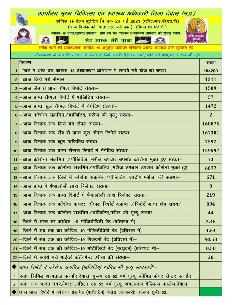 देवास कोरोना हेल्थ बुलेटिन – 23 मई 2021 (यूनिट.आई.डी.एस.पी.)