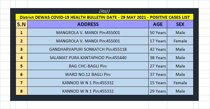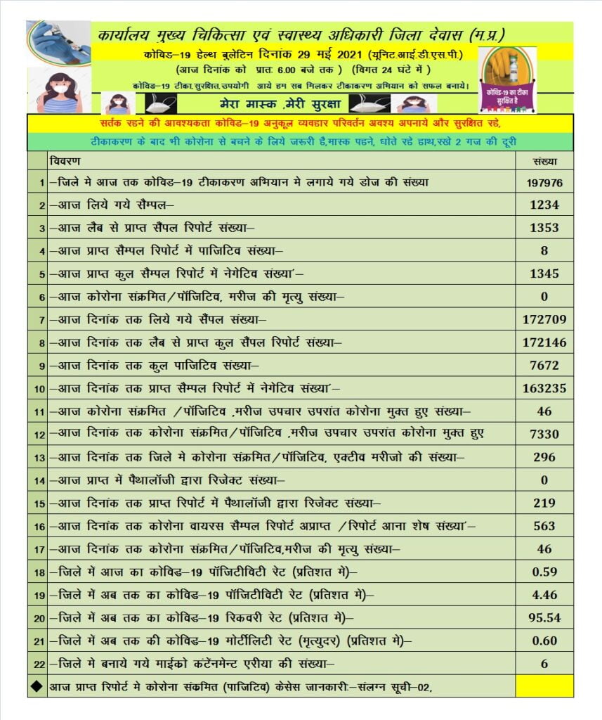 देवास कोरोना हेल्थ बुलेटिन – 29 मई 2021 (यूनिट.आई.डी.एस.पी.)