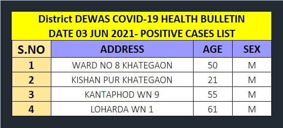 देवास कोरोना हेल्थ बुलेटिन – 3 जून 2021 (यूनिट.आई.डी.एस.पी.)