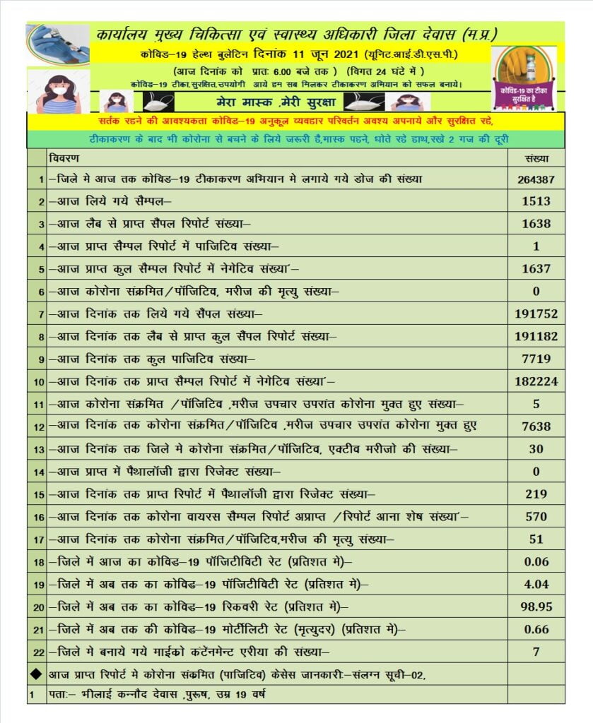 देवास कोरोना हेल्थ बुलेटिन – 11 जून 2021 (यूनिट.आई.डी.एस.पी.)