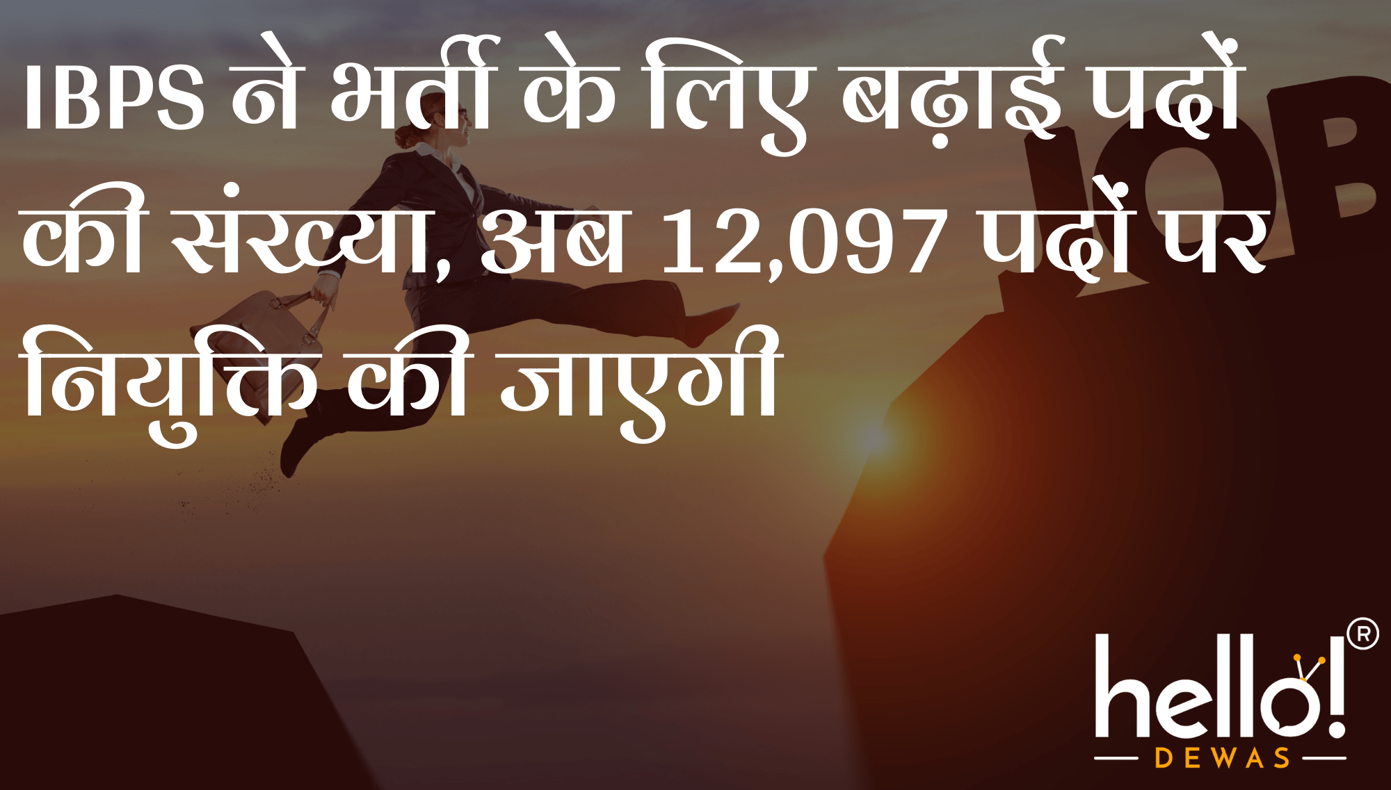इंस्टीट्यूट ऑफ बैंकिंग पर्सनल सिलेक्शन (IBPS) ने रीजनल रूरल बैंक में असिस्टेंट मैनेजर समेत विभिन्न पदों पर भर्ती के लिए जारी अपने नोटिफिकेशन में बदवाल किया है। पहले जारी नोटिफिकेशन मुताबिक कुल 10,466 पदों पर भर्ती के लिए आवेदन मांगे गए थे,लेकिन अब इन पदों को बढ़ाकर 12,097 कर दिया गया है। इच्छुक और योग्य कैंडिडेट्स इन पदों के लिए आवेदन की आखिरी तारीख यानी 28 जून तक ऑनलाइन आवेदन कर सकते हैं।