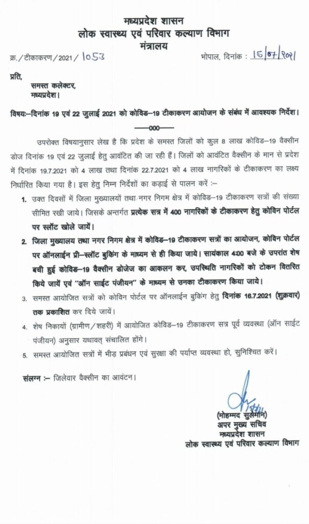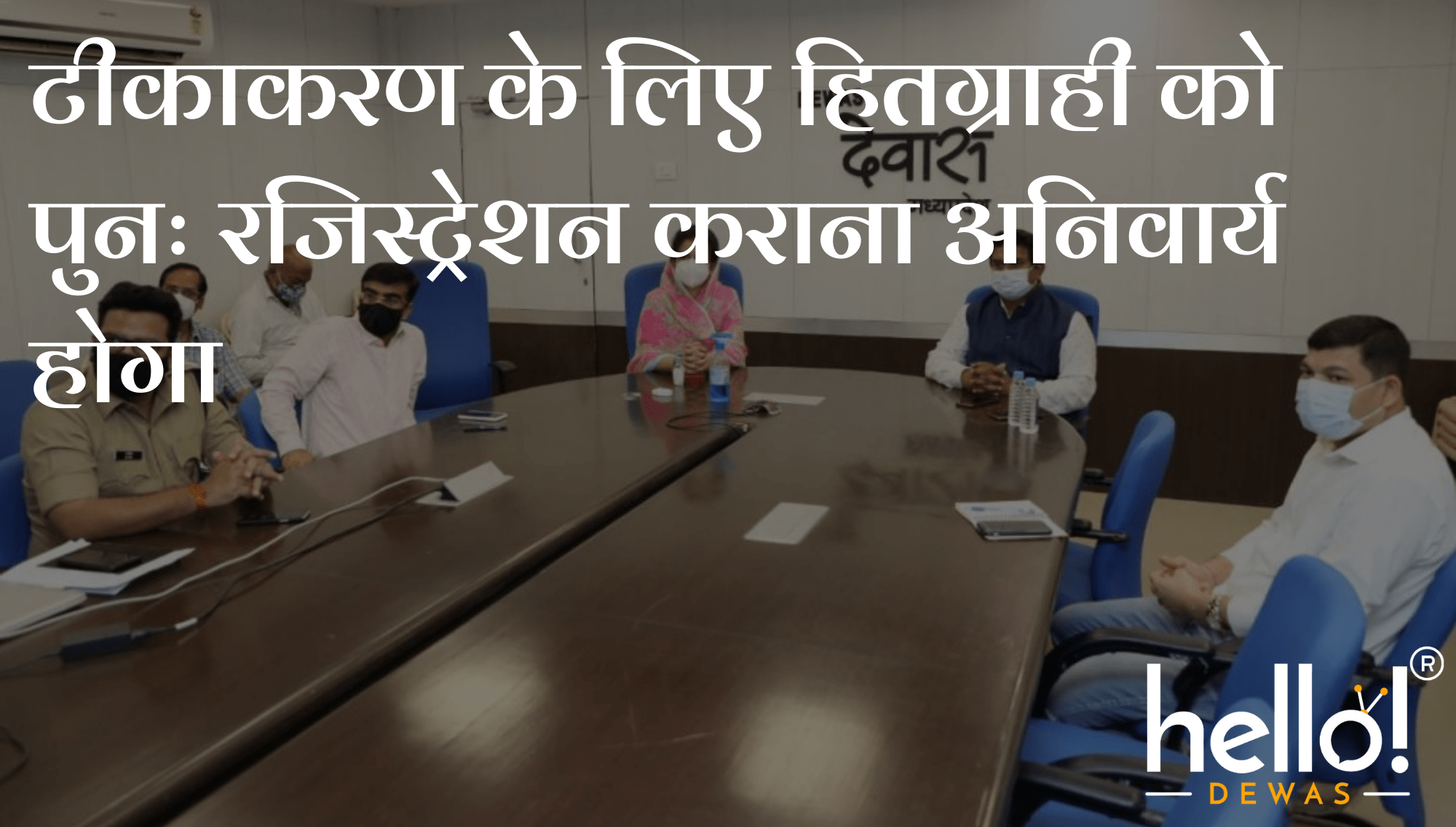 देवास जिला कलेक्टर के आदेश अनुसार टीकाकरण के लिए हितग्राही को पुनः रजिस्ट्रेशन कराना अनिवार्य होगा और स्लॉट बुक करना होगा ।
