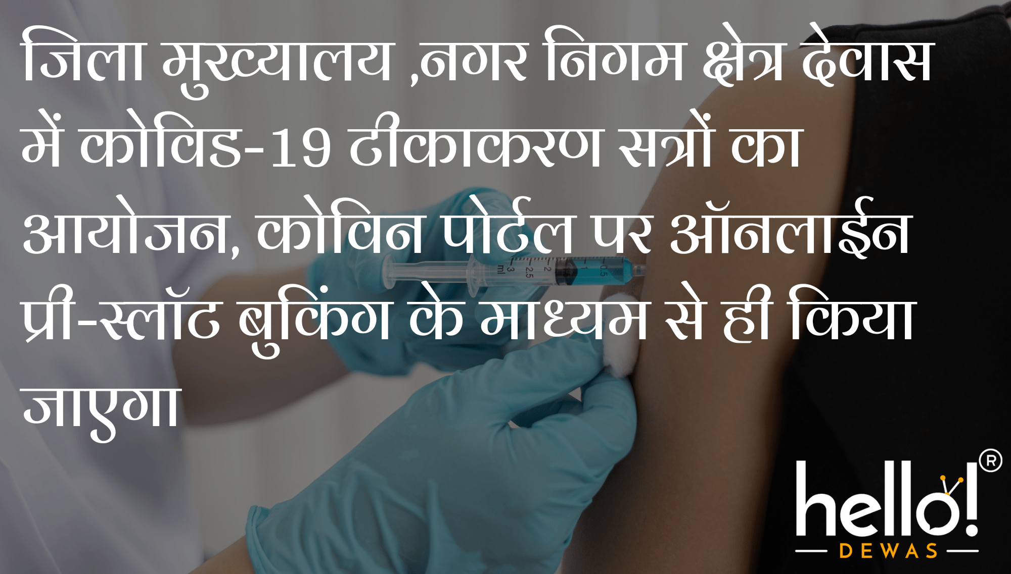 मुख्य चिकित्सा स्वास्थ्य अधिकारी डॉ एमपी शर्मा ने बताया कि देवास शहरी क्षेत्र मे 4 अगस्त 2021,को कोविड-19 टीकाकरण, के 16 सत्र आयोजित होंगे।सभी सत्र में कोविशिल्ड वैक्सीन के पहला औरं दूसरा डोज लगाये जाएगे शहरी क्षेत्र देवास में कोविड-19 वैक्सीनेशन के 16 सत्र साइट का नाम,आईटीआई कॉलेज, विकास नगर चोराहा, देवास,गीता भवन देवास,भंडारी अस्पताल देवास,शिशु विहार स्कूल, मिल रोड, चिम्नाबाई के सामने ,न्यू चिलरेन होम मोती बंगलो देवास,न्यू एरा स्कूल आवास नगर,शांति बाल निकेतन, तारानी कॉलोनी देवास,एस्कॉर्ट जूनियर कोलाज गंगा नगर देवास,हिमालय अकादमी, राधागंज देवास,सरकारी,स्कूल आलोट पयगा नयापुरा देवास वार्ड-नंबर 36,इस्लामिया क्रमिया स्कूल शुक्रवरिया हाट, देवास, मध्य विद्यालय क्रमांक 02 खारी बावड़ी देवास,सरस्वती विद्या मंदिर सम्राटपुरी बालगढ़, संजीवनी,क्लिनिक बालगढ़,ब्राइट स्टार स्कूल इंद्र नगर देवास,सरकारी स्कूल रसलपुर देवास, जिला मुख्यालय ,नगर निगम क्षेत्र देवास में कोविड-19 टीकाकरण सत्रों का आयोजन, कोविन पोर्टल पर ऑनलाईन प्री-स्लॉट बुकिंग के माध्यम से ही किया जाएगा।