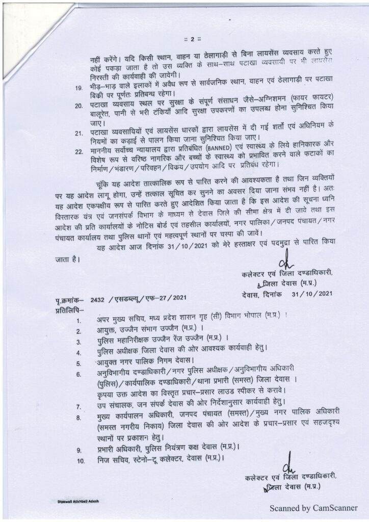 – रात्रि 8 बजे से पहले तथा रात्रि 10 बजे के बाद पटाखें चलाना रहेगा प्रतिबंधित