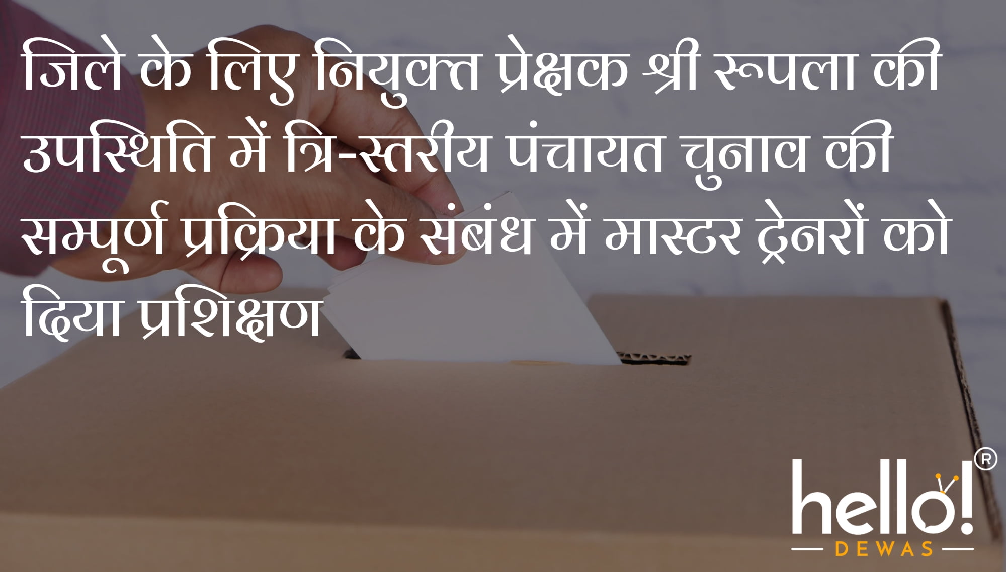 प्रशिक्षण डॉ. समीरा नईम तथा डॉ. एसपीएस राणा ने दिया। प्रशिक्षण में प्रेक्षक सेवानिवृत्त आय.ए.एस श्री एस.एन. रूपला ने मास्टर ट्रेनरों को त्रि-स्तरीय पंचायत आम निर्वाचन के संबंध में आवश्यक दिशा-निर्देश भी दिये। मास्टर ट्रेनरों को प्रशिक्षण में त्रि-स्तरीय पंचायत चुनाव के लिए सम्पूर्ण प्रक्रिया के संबंध में जानकारी दी गई। मास्टर ट्रेनरों को ईवीएम के संबंध में जानकारी दी गई। प्रशिक्षण में बताया गया कि देवास, टोंकखुर्द और सोनकच्छ के लिए अभ्यार्थिता से नाम वापस लेने की अंतिम तिथि 23 दिसम्बर, निर्वाचन लडने वाले अभ्यर्थियों की सूची तैयार करना तथा निर्वाचन प्रतीकों का आवंटन 23 दिसम्बर को किया जायेगा। देवास, टोंकखुर्द और सोनकच्छ के लिए मतदान 28 जनवरी को किया जायेगा।