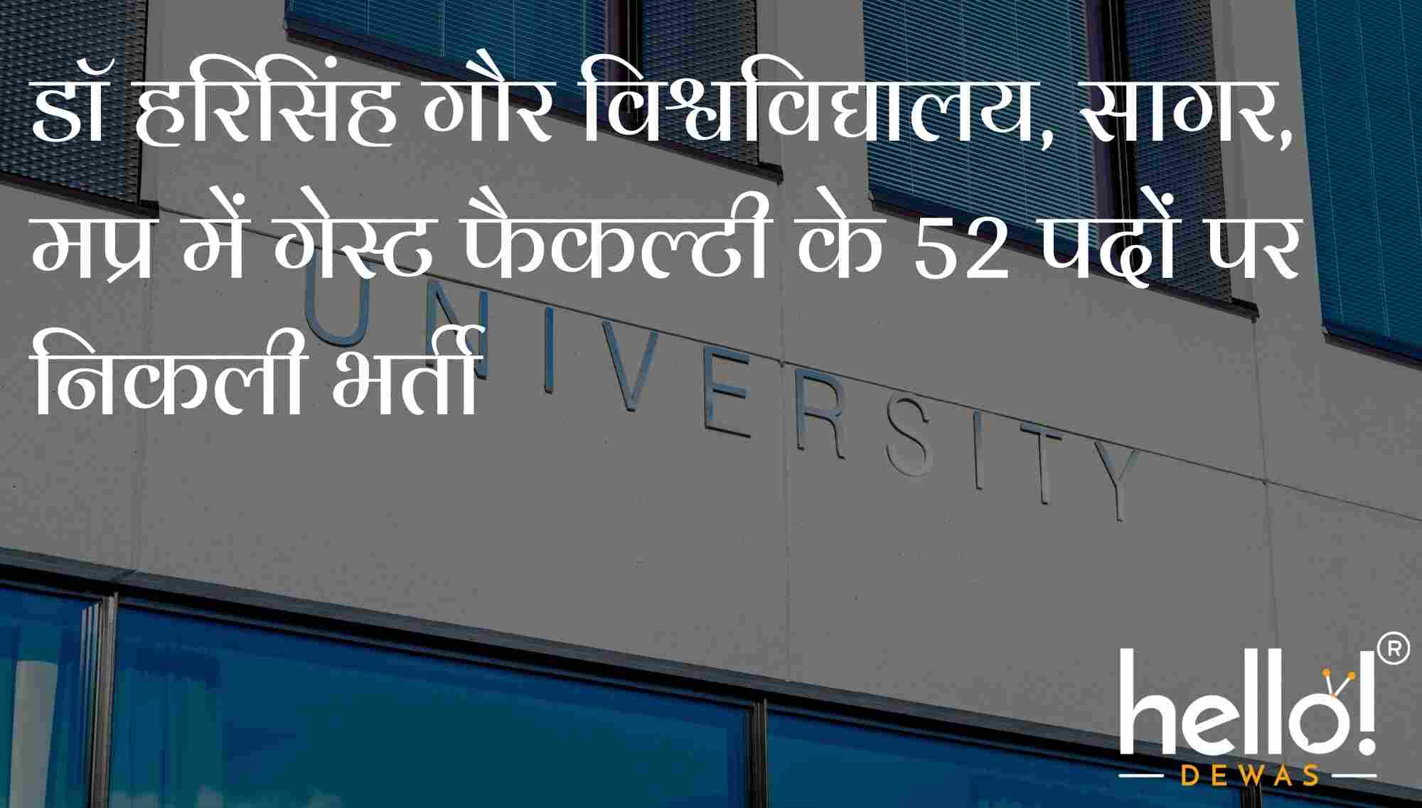 मध्य प्रदेश के सागर में स्थित डॉ हरिसिंह गौर विश्वविद्यालय ने गेस्ट फैकल्टी पदों पर भर्ती के लिए आवेदन मांगे है।