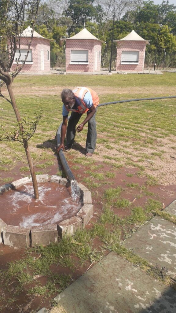 स्वच्छता के साथ पर्यावरण संरक्षण पर जोर, गार्डनों में नियमित रूप से हो रहा पानी का छिड़कावदेवास।