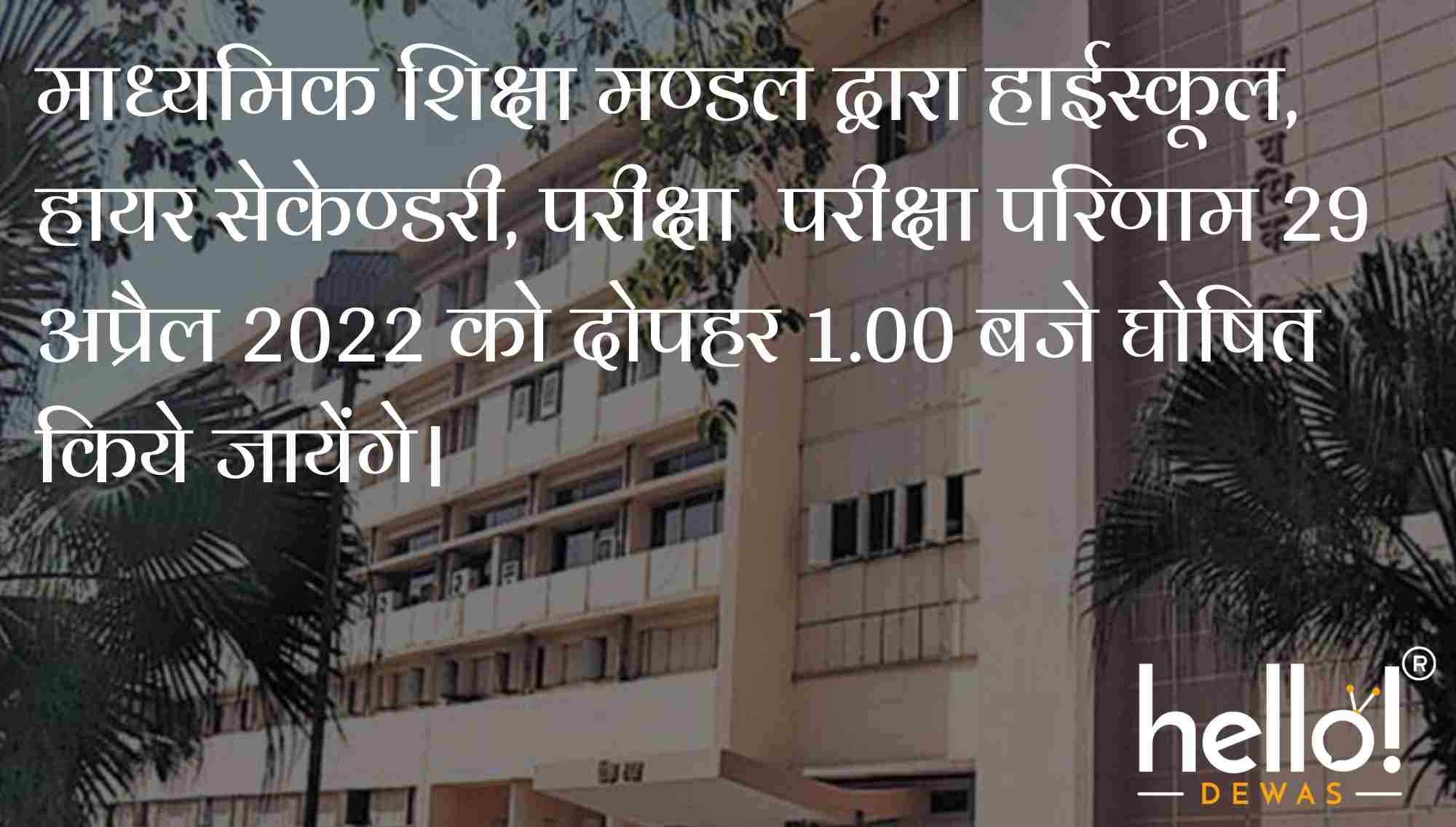 माध्यमिक शिक्षा मण्डल द्वारा हाईस्कूल, हायर सेकेण्डरी, परीक्षा परीक्षा परिणाम 29 अप्रैल 2022 को दोपहर 1.00 बजे घोषित किये जायेंगे।