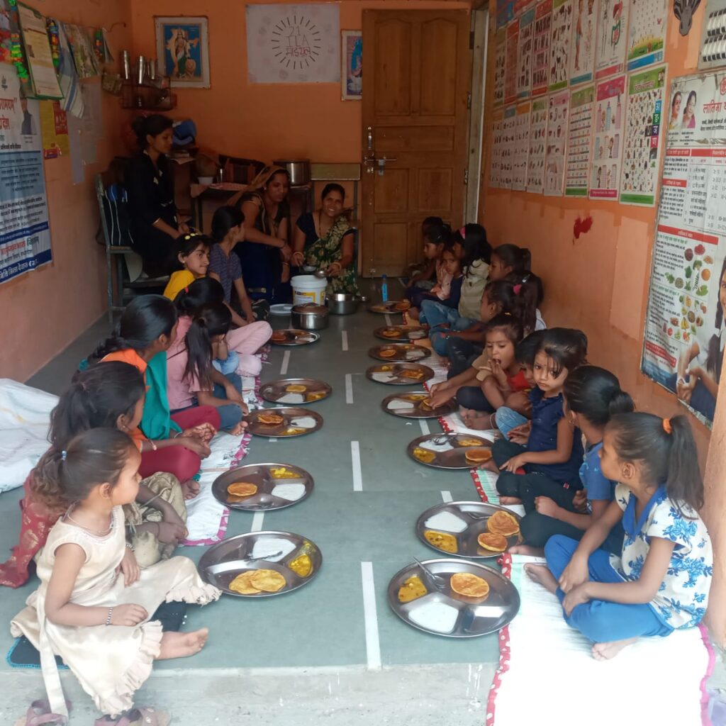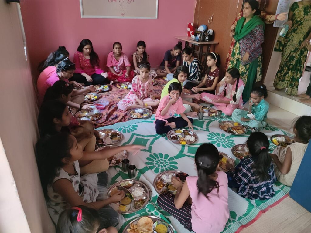 वार्ड क्रमांक 33 आंगनवाड़ी बागरी मोहल्ला सेक्टर भवानी सागर पर्यवेक्षक मैडम कविता सोनगरा के मार्गदर्शन में लाडली बालिकाओं को कन्या पूजन भी किया गया समिति के अध्यक्ष धापू चावड़ा के द्वारा खीर पुरी का भोजन करवाया गया बालिकाओं को उनके स्वास्थ्य के बारे में जानकारी दी ।