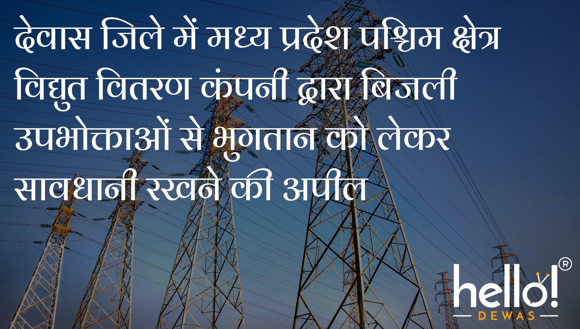मध्यप्रदेश पश्चिम क्षेत्र विद्युत वितरण कंपनी लिमिटेड ने बिजली उपभोक्ताओं से भुगतान को लेकर सावधानी रखने की विनम्र अपील की है।