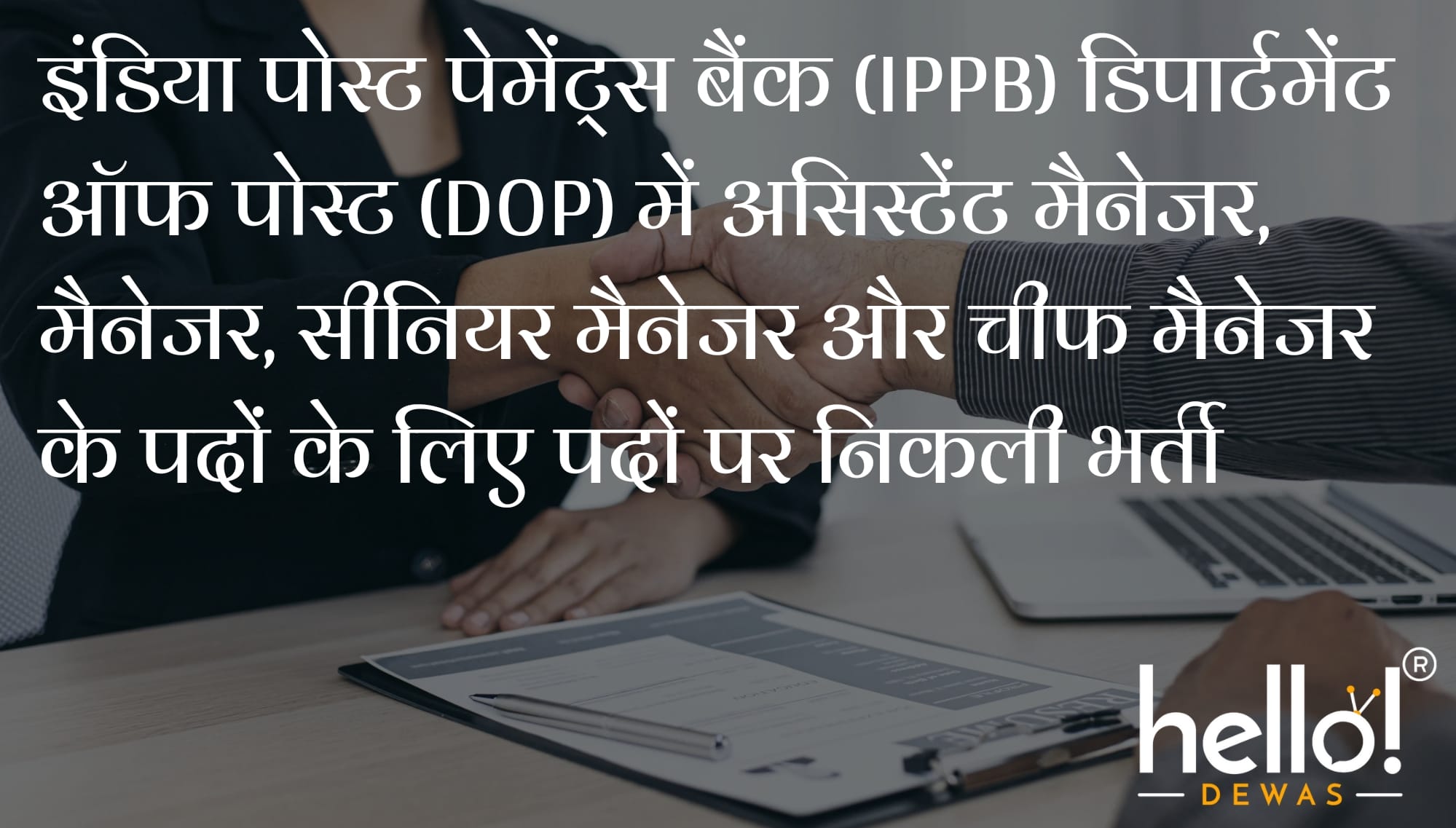इंडिया पोस्ट पेमेंट्स बैंक (IPPB) डिपार्टमेंट ऑफ पोस्ट (DOP) ने असिस्टेंट मैनेजर, मैनेजर, सीनियर मैनेजर और चीफ मैनेजर के पदों के लिए ऑनलाइन आवेदन आमंत्रित किए हैं। जो उम्मीदवार इन पदों पर आवेदन करना चाहते हैं, वह भर्ती का नोटिफिकेशन पहले पढ़ लें। उसके बाद ही आगे की प्रक्रिया शुरू करें।