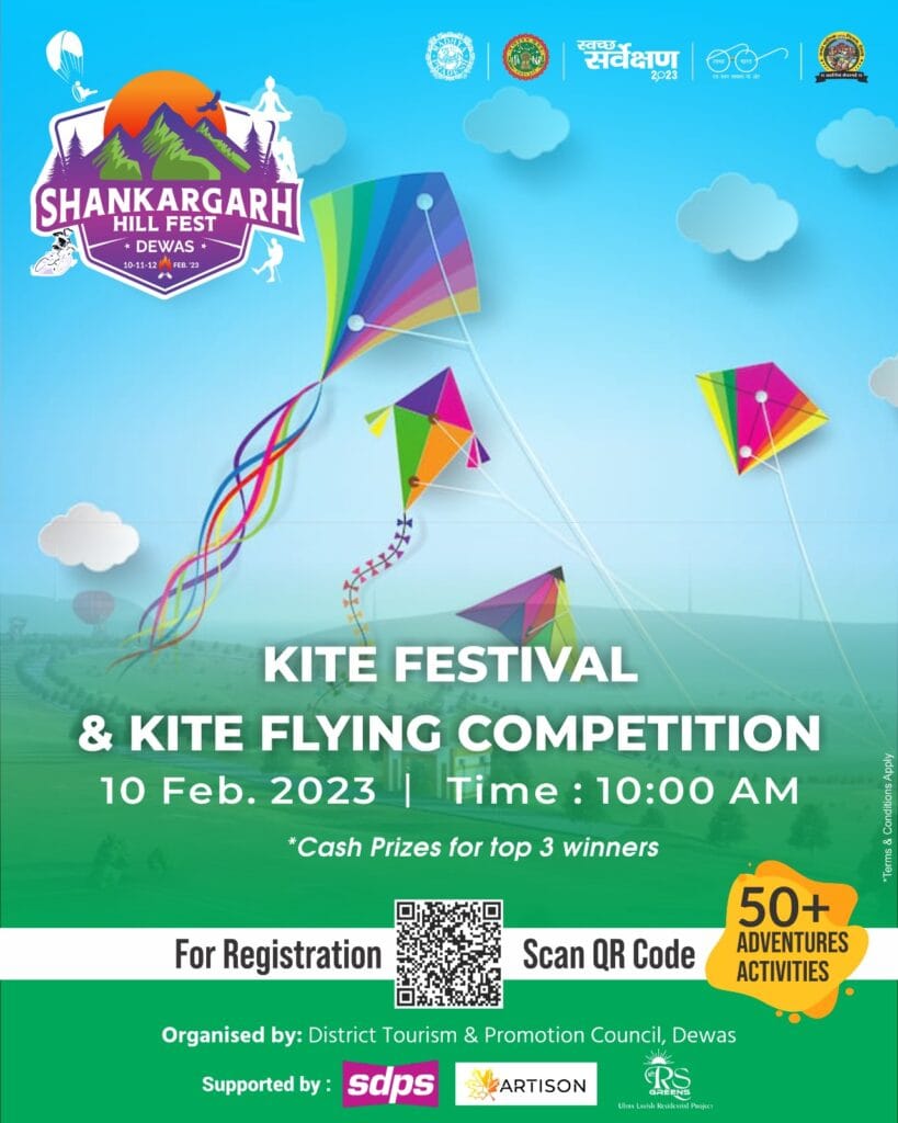 जिला एवं नगर निगम प्रशासन के द्वारा शंकरगढ़ हिल्स एडवेंचर फेस्ट 2023 का 3 दिवसीय आयोजन का शुभारंभ दिनांक 10 फरवरी को सुबह 9:30 बजे शंकरगढ़ हिल्स पर सांसद महेन्द्र सिंह सोलंकी, विधायक श्रीमंत गायत्री राजे पंवार, महापौर श्रीमती गीता दुर्गेश अग्रवाल, सभापति रवि जैन, विधायक एवं महापौर प्रतिनिधि दुर्गेश अग्रवाल के द्वारा सभी निगम पार्षद गण व जन प्रतिनिधि व कलेक्टर ऋषभ गुप्ता एवं निगम आयुक्त विशाल सिंह चौहान के साथ शंकरगढ हिल्स पर शुभारंभ किया जावेगा। शुभारंभ के साथ ही अतिथियों के द्वारा प्रात: 10 बजे पौधा रोपण के पश्चात बच्चों के द्वारा पतंगबाजी, 10:40 पर राजस्थानी ग्रुप प्रस्तुति, शाम को ओपन माईक एवं डांस आदि गतिविधि होगी।