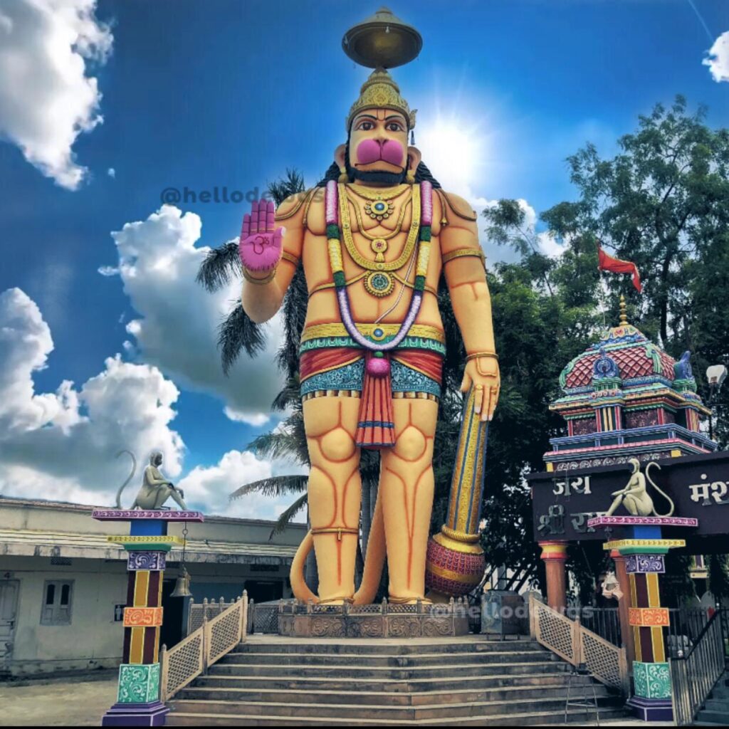 The Kela Devi or Kaila Devi Temple was built in 1995 by South Indian artists. The temple has a 51 foot statue of Lord Hanuman. The original Kaila Devi Temple is located in the Karauli district of Rajasthan built on the banks of Kalisil River. The temple is dedicated to the tutelary deity, Goddess Kaila Devi, of the erstwhile princely Yaduvanshi rulers of the Karauli state.